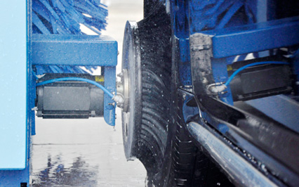 進口意大利塑玻絲輪刷,根據(jù)光電開關(guān)感應(yīng)判斷車身位置,輪刷啟動至輪轂位置,開始清洗,正反旋轉(zhuǎn)刷洗輪轂,電腦洗車機全程電腦全自動控制輪刷伸縮。
